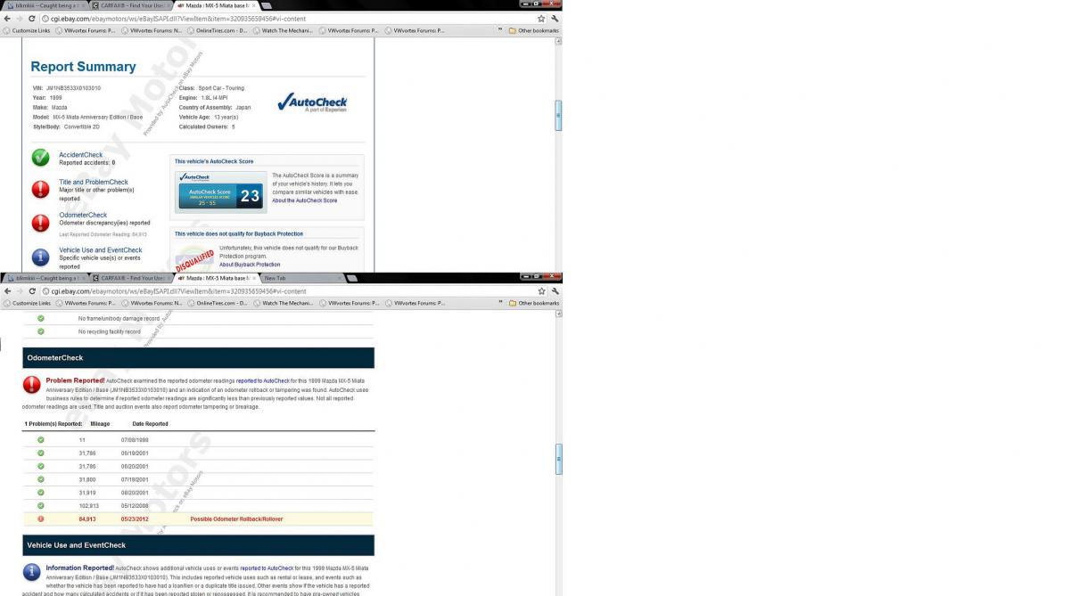 now, if you look at the other vin number - jm1nb3533x0103010 - it's for a green miata with roughly 85-88k on it.
