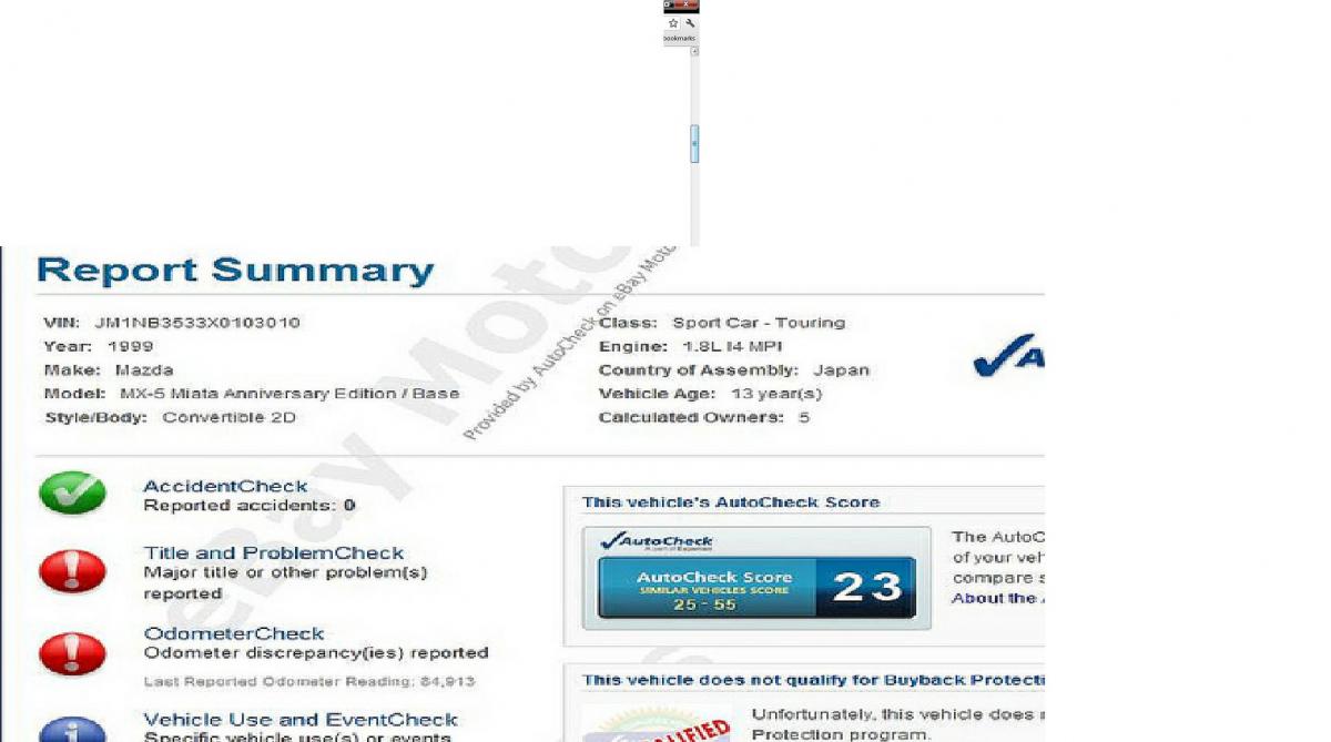 try using carfax, not ebay