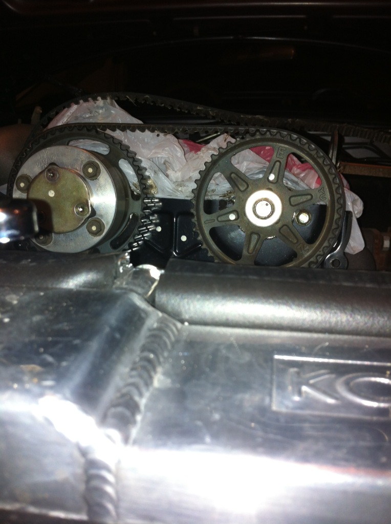 So I have most of the front torn down. Today was the first day in two weeks I had time to **** with the car. Got the timing covers off and other stuff, but still need to pull the upper rad hose (will pull radiator out for the t-belt repair just to make more room). Will do a few other things while I am in there this weekend.