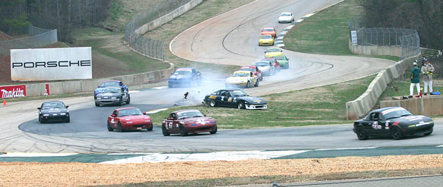 It's a shame- that was the second lap and I'd qualified between the two yellow Miatas in the back ground. But as the competition increases, the risks you have to take to get ahead do also... Spent a little more money than I'd planned to that weekend (wasn't my car). - rob