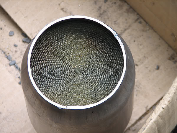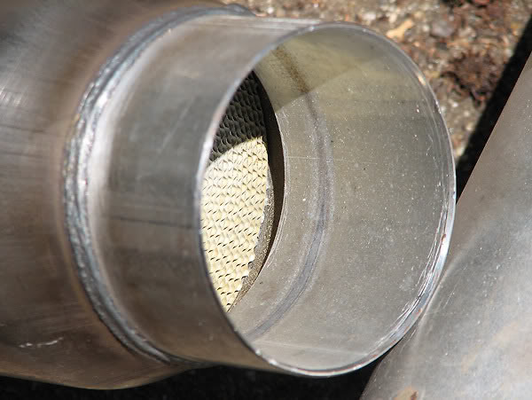 Brainy- the problem with that eastern cat is that the inlet/outlet pipes do not taper into the cat body, they just drop off. Unless they've changed it. I had to chop my tubes off and the flare my exhaust out to meet up with the cat body (pic below.) TurboTim found another one for the same price that was built right- a smooth transition from the inlet/outlet into the cat body.