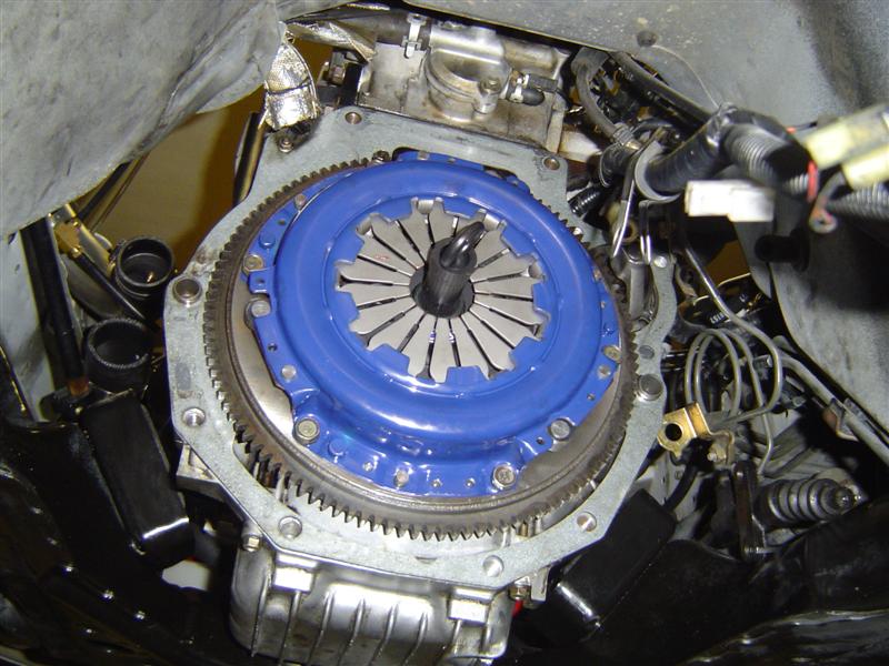 5. Install of the disc and pressure plate was easy. The alignment tool works as advertised. The studs on the flywheel were little tight for the holes on the pressure plate, so a rubber mallet came in handy. All said and done, the disc was off-center maybe 1/2mm... I think that will settle out first time I push one the clutch.