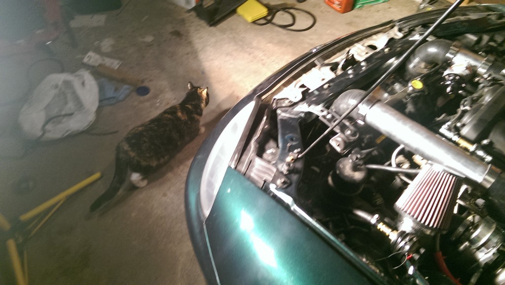 That's right. Turbo kitten himself set foot, or should I say paw, in my garage mere moments after completing my build. It was a sign. The Turbo Miata gods sent this corporeal incarnation to assure me that "it was good".
