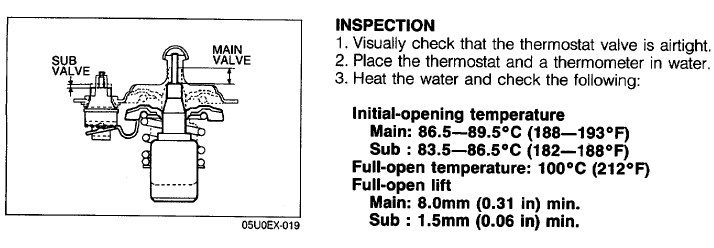 It's unbelievable the variety of stuff you can end up with from parts stores claiming "Perfect OEM match part". ORielly's has at least two different temps, and even a thermostat with the back flow valve that they list as "Perfect matches.". Rockauto is doing about the same. The NAPA part has been the only one I've found that's both the correct temperature and configuration for the NB cars aside from the dealer item. And I'm pretty pleased to see full flow by 205 deg.. With the reports I saw of the OEM part being bad or failing in only a few months service, it's just not worth the risk or price imo.