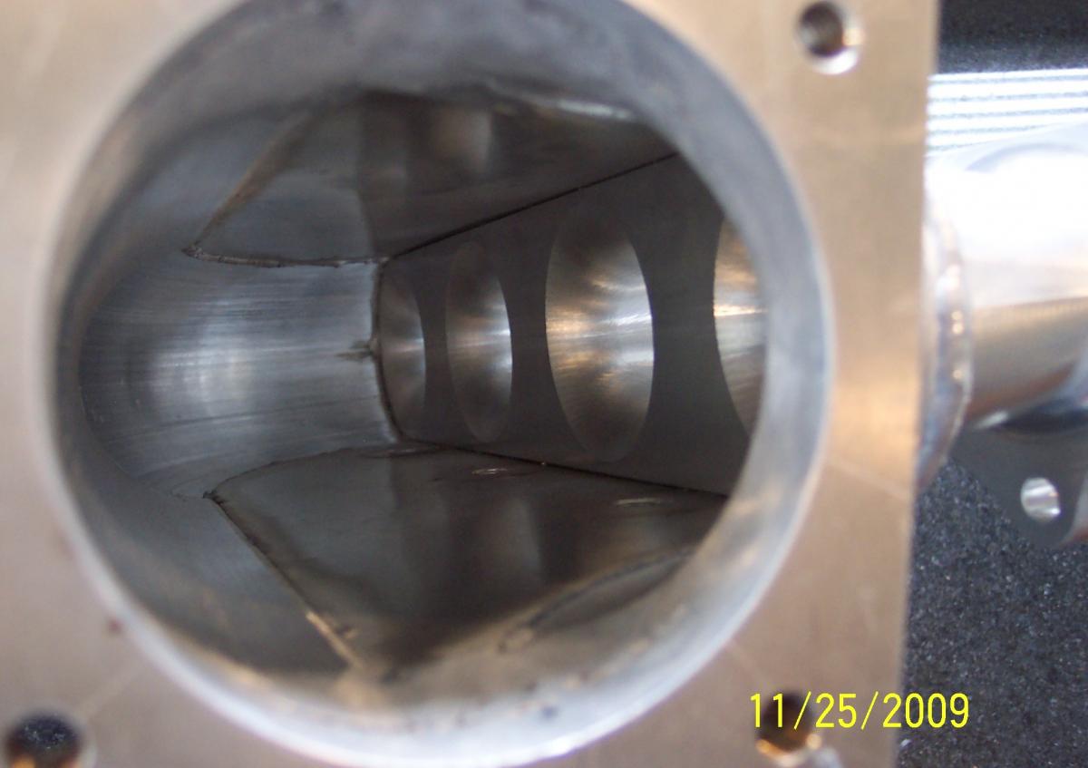 I would have to agree that it has an issue withCyl.#1 not having sufficient airflow.Also the finish of the velocity stacks could be smoother.I dont have pics of mine,The v-stack is a smooth,polished transition all the way to the head.