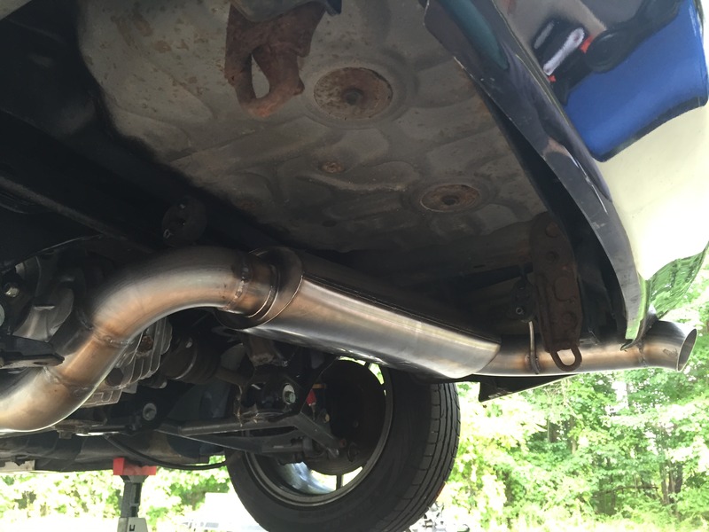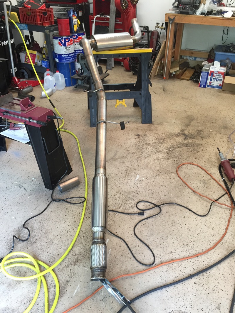 Exhaust is my 1st Tig welding project, all 3" 16g 304 stainless, stainless vbands and hangers aswell. It has a 15" resonator after the flex and a 16" long Borla XR-1 muffler. Sounds great, very throaty for a Honda.