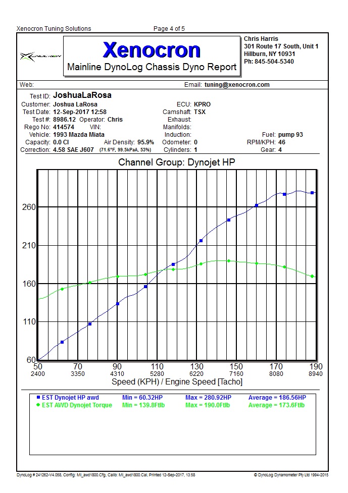 Well I fell short of my expectations, not sure if they were unreal or not. I based them on similar setups I had seen on fwd cars. And I estimate a 10whp additional drive train loss based on what my stock tsx motor was making compared to fwd cars. But it its what it is and my post dyno compression test shows 250 psi across the boards. All in all everything went well and Chris from Xenocron did a great job as usual with very professional services. Maybe the combination is wrong, I think the header may be holding back a few ponies, but I need to drive so I will think more about it after Christmas.