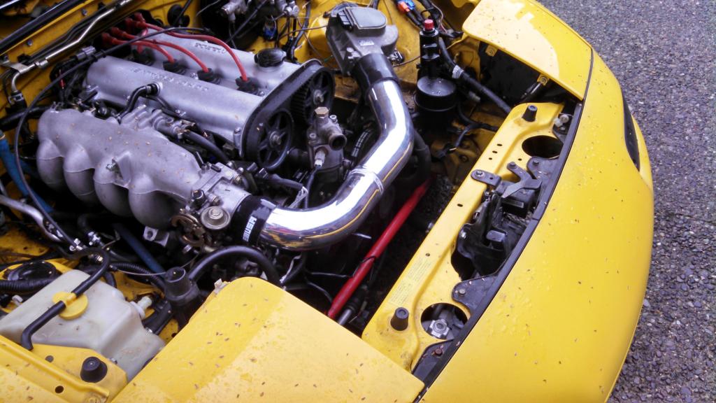 In the picture, you can see the filter from my original intake resting inside the engine bay. Don't be fooled, we don't have some sort of bizarre dual-filter setup going here.