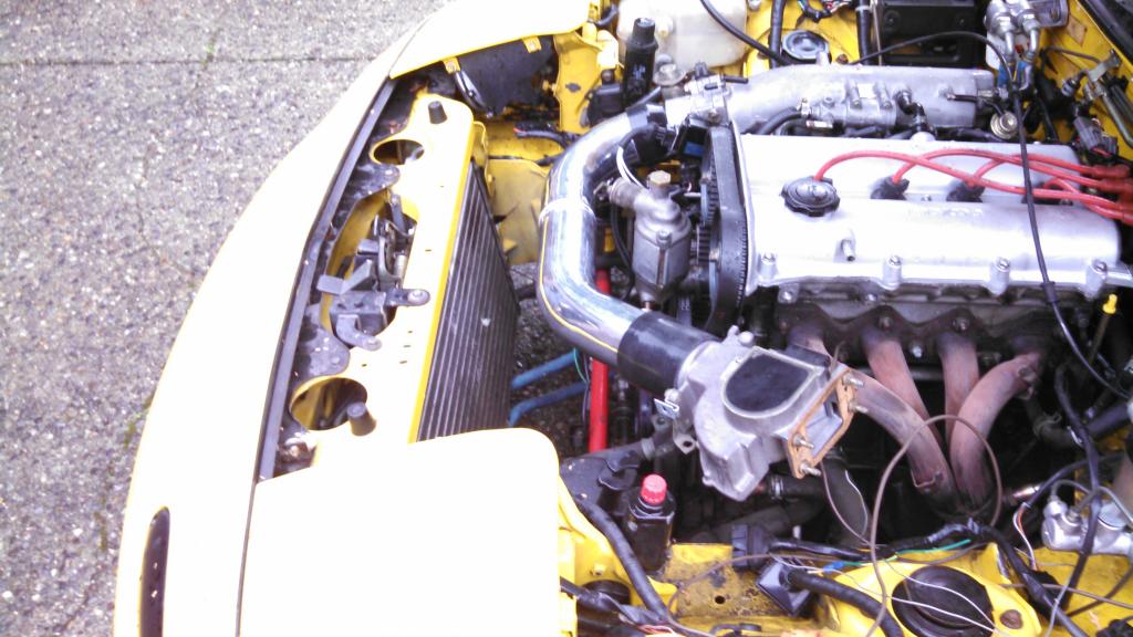 My temporary intake pulled hot air from behind the radiator. That's one reason it was temporary, and why it was mounted upside down in the previous picture of the car on the dyno.