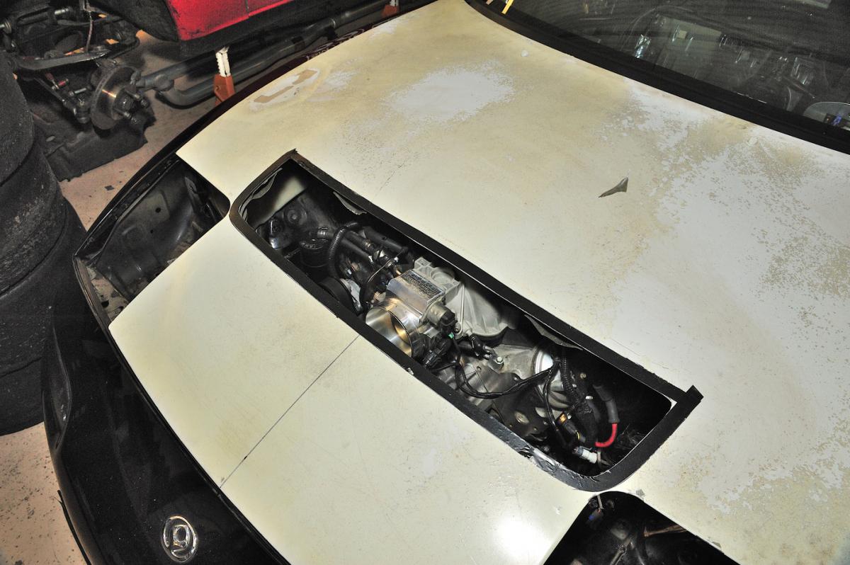 Had my vent installed on Sunday. It had to be pushed pretty far forward to clear the throttle body. The hood flexes a little in the front, but it's easy enough to add back some bracing.