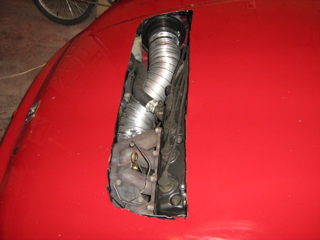 This thread and others like it on other Miata sites and the S2000 forums led me to doing some hood vents. I did one large one right behind the radiator and before the engine block and some triangular venting on the driver's side. They will be painted black so they don't look so ghetto. Disregard the black stripes, we did a vent on my buddy's AE86 hood and he painted them on while forgetting my hood is aluminum and will not rust. My whole car is being painted soon so that will be gone. So far we have both noticed a reduction in fumes in our cars and watched the heat pour out of there while we drive. My buddy reports reduced drag, but I think that's all in his head