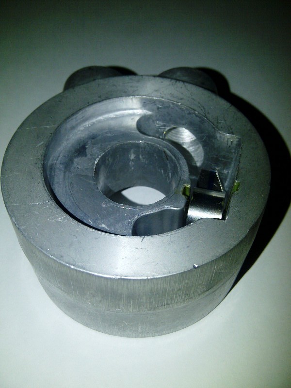 1st picture is the adapter plate on the oil filter side. Thermostatic coil and oil cooler feed outlet are clearly visible. So far, so good.