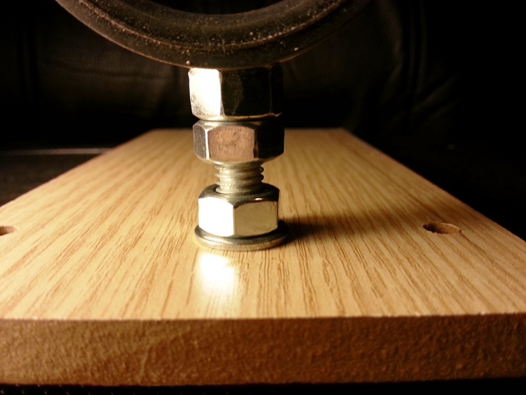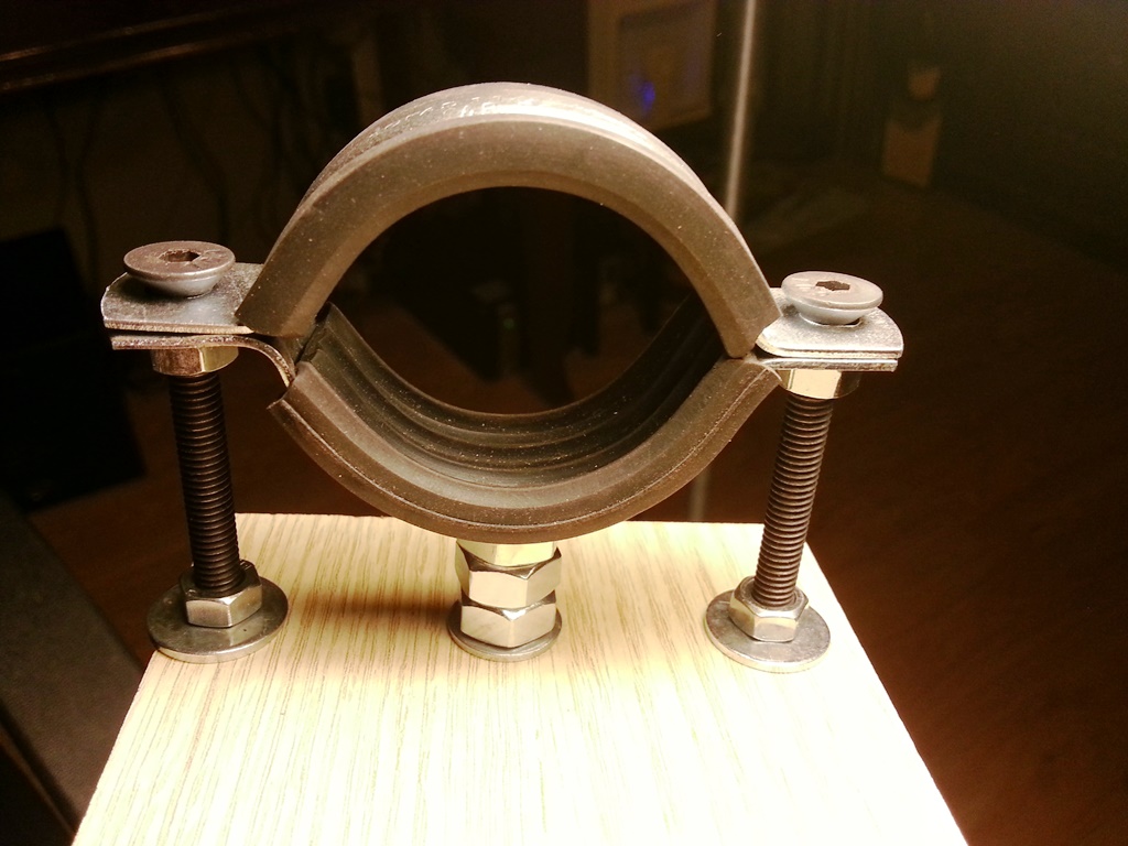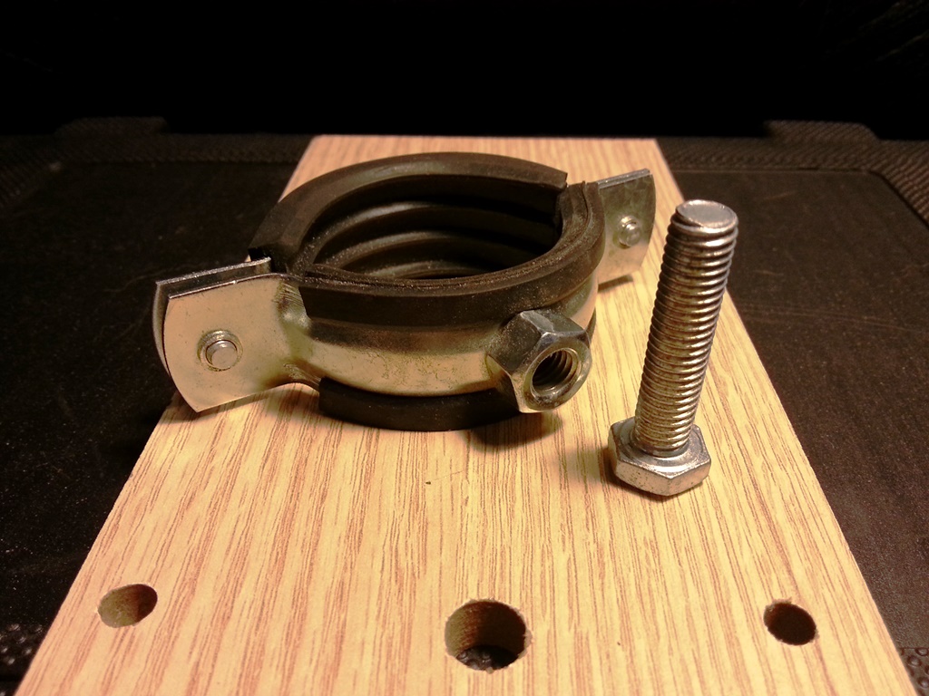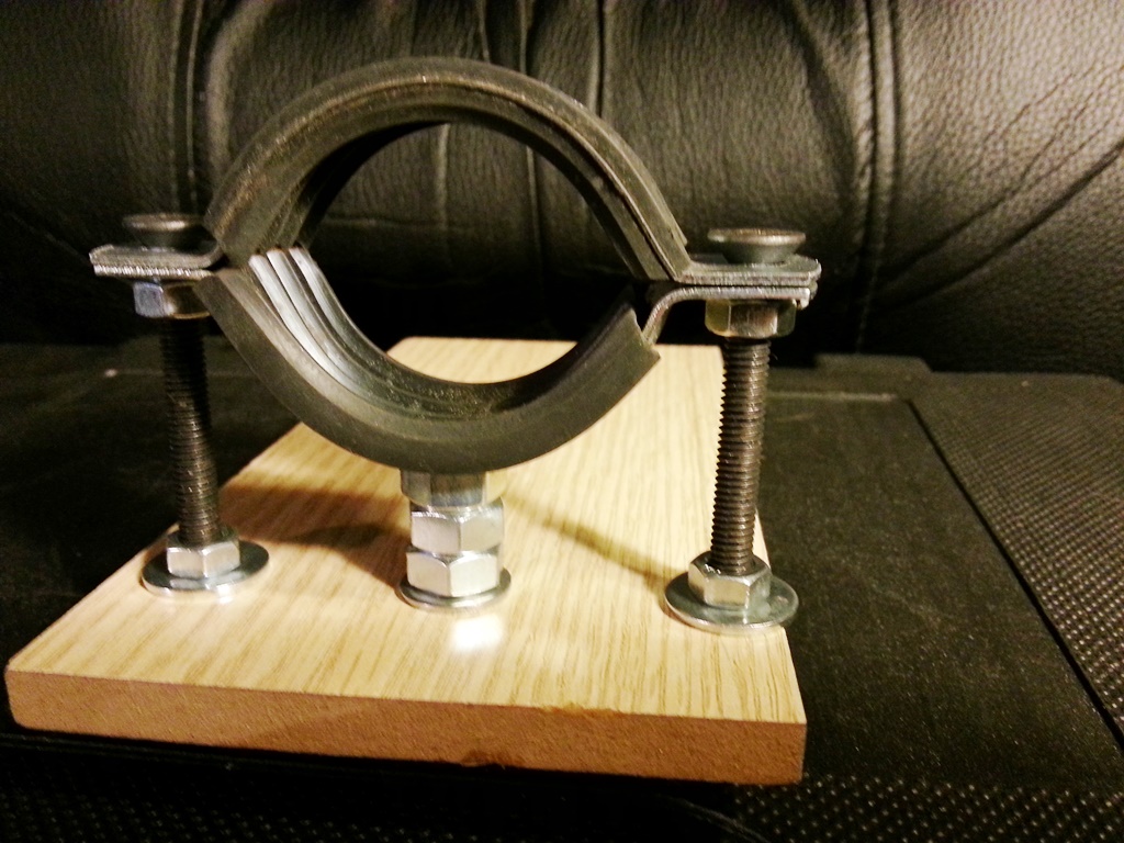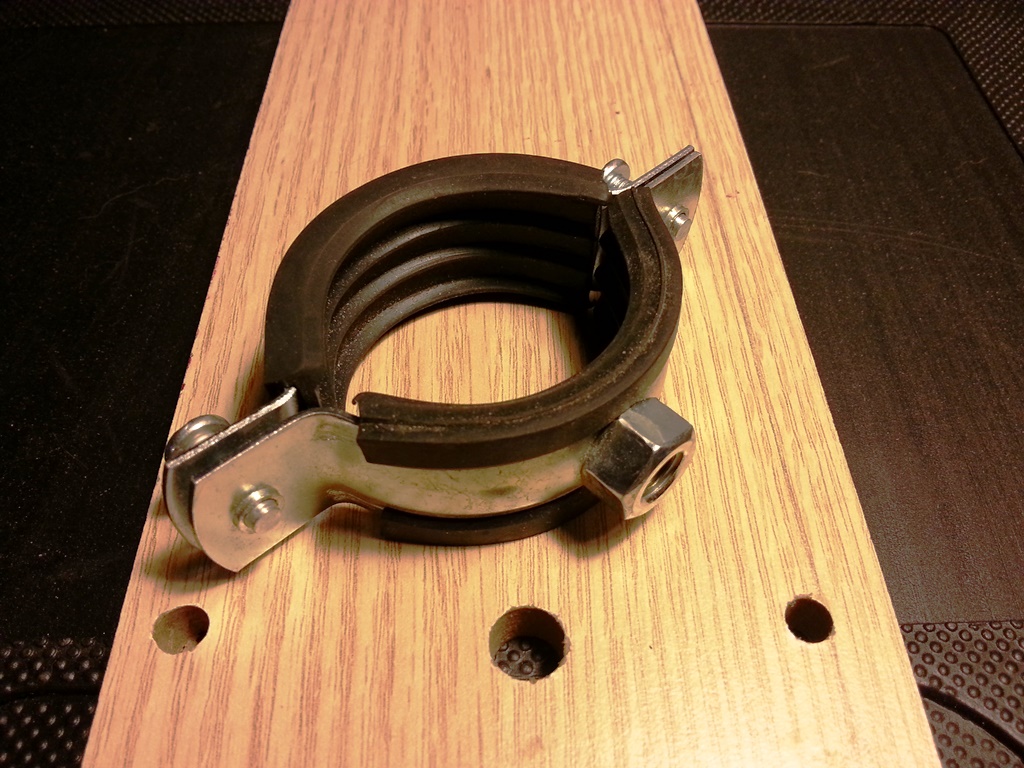 Here is the clamp I was talking about. The MDF board I cut and drilled is the car's chassis in this case.