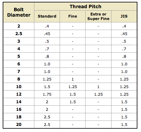 There are a couple of tables I frequently consult when pondering Miata bolts (which are for the most part, JIS standard).