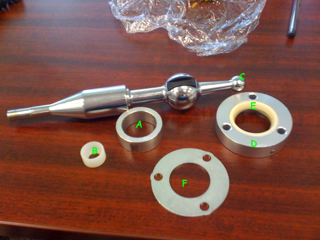 to follow up, hell yes listen to paul, that piece b WILL break. do not use it. use the orig. bushing. To go further - this kit is not that great as delivered. modified it's pretty darn good. here's what I did. as delivered the **** height is way too high. The shift level is in two pieces screwed together. Why? I dunno. But paul is right, they will come apart. Take em apart and dremel off most of the threaded end. Leave 1/2" or so. Dremel off as much of the upper, female threaded part as matches what is left on the threaded portion. That has the effect of shortening the whole assembly pretty significantly. Now coat the threaded portion in jbweld and screw back together. It will come apart unmodified but it darn will now without the jbweld, with fewer threads. I can't recall, but I think I also lopped off some of the threaded portion up top where the shift **** threads on.