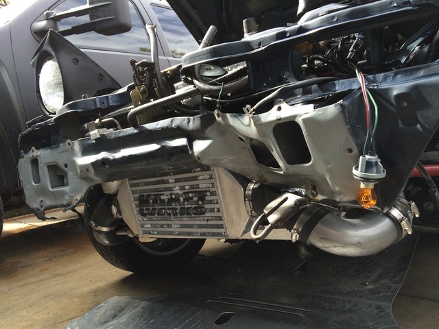 The plan was to sell the supercharger kit and go turbo over the winter, but that's all on hold for now.There is some frame damage in front of the shock tower, mostly before where the headlight mounting studs are, but there is one little dimple in the frame behind the headlight mounting plate and before the shock tower.