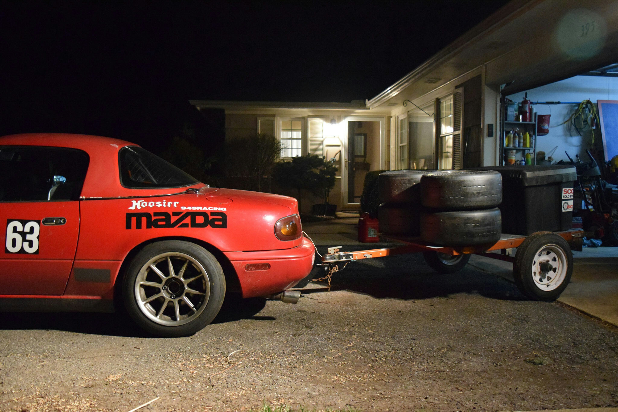 Nonetheless, never any issues towing what you see here. 949 wheels with Hoosiers, the box filled with camping stuff, tools or both, depending on trip. Probably about 350-450 lbs of total weight sometimes. Pulls at 85mph no problem.