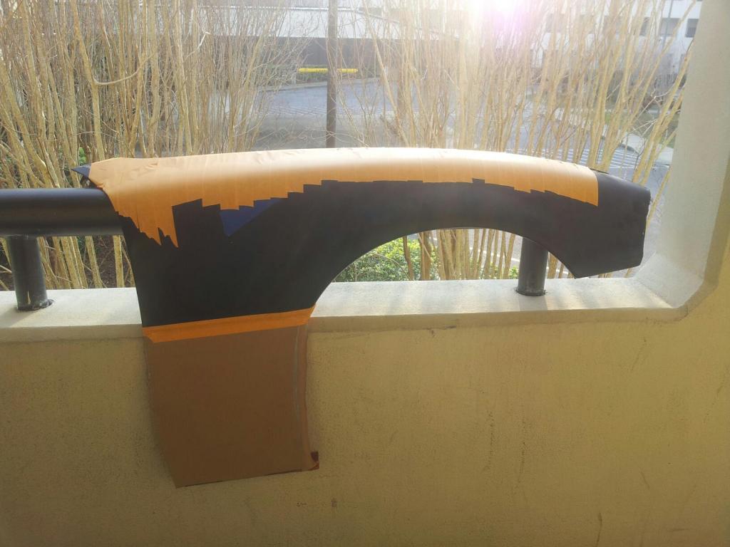 I'm working on my fender in the hotel. I don't know if I should have them the way I have them or set it up like the 300RR Lotus. I made the current one 35mm wider for the 275 wide tires.