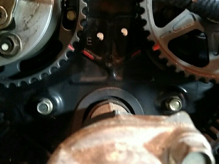 Now that I get a close look at the pic, its unfortunate that the exhaust side was a bit dark, hopefully between the overhead and exhaust shot you can see the orientation.... Safe to say its def not 3oclock, and yes this was at TDC when all the markings lined up and confirmed w dipstick in #1.