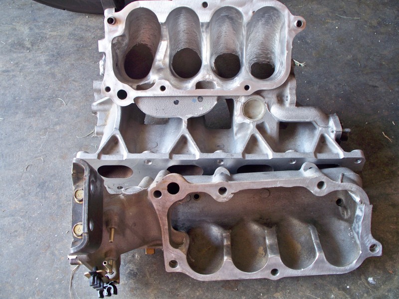 Weight comparisons, the stock manifold weighted 16.25lbs the gutted manifold weighed 12.96lbs. So we removed a little over 3.25 pounds of aluminum from the thing.