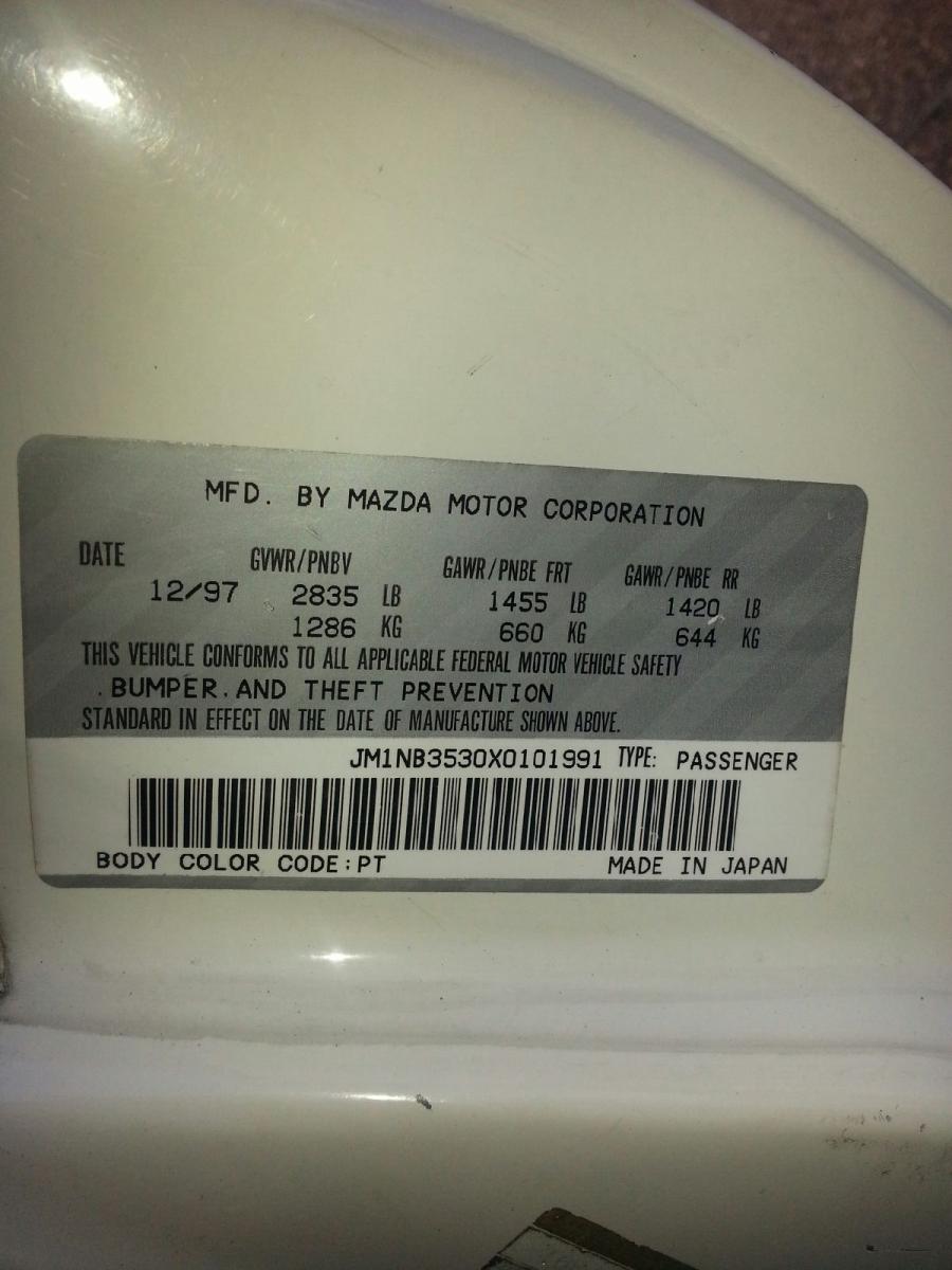 This is my first Miata.... And when i would order parts for it, it was pretty common for me to get the wrong parts. When i would order parts, and was asked for a production date I would give them this.....
