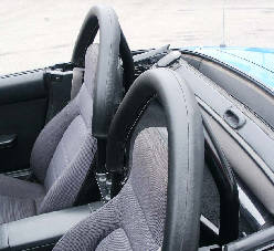 The double hoop looks very nice and even though it meets the SCCA rollbar strength requirements I wouldn't recommend using it. Even for me at 5'7" the upper part of the roll hoop is way to close to my head on the street. It was possible for me to roll my head on the headrest and hit the rollbar. Tith the HDHC I have in all three of our family Miatae now I can't hit my head on the rollbar while seated unless I come out of my seat.