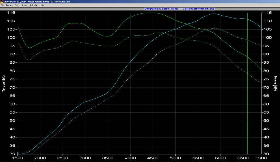 I did not take a screen cap, but the difference between running the stock intake box vs running open MAF (no filter) was 2hp up top.
