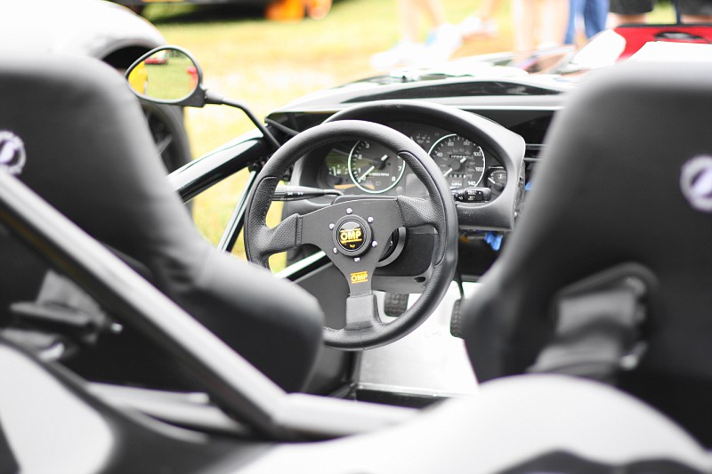 Pretty cool to inspect the car up close - I didn't realize that the front and rear Miata subframes bolted right up to this chassis. He estimates one can be built in 100 hours - that's not bad.