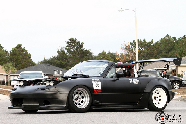Not only did that guy have his just-finished Exocet crunched at the gas station, his day actually started by having his neighbor back into his daily driver Miata.