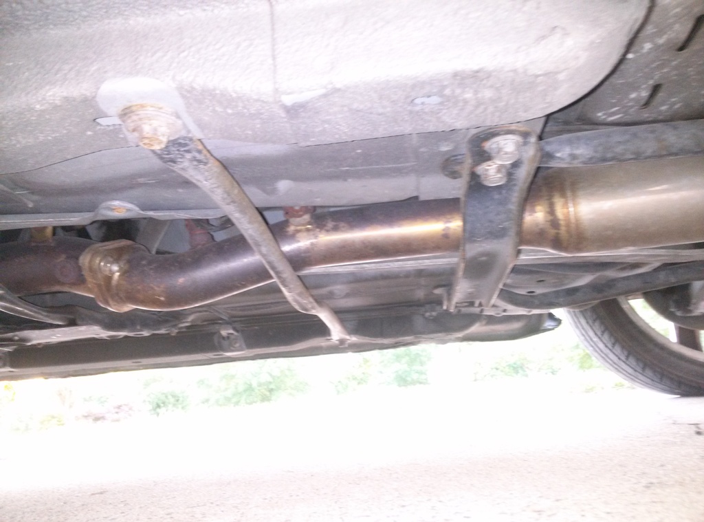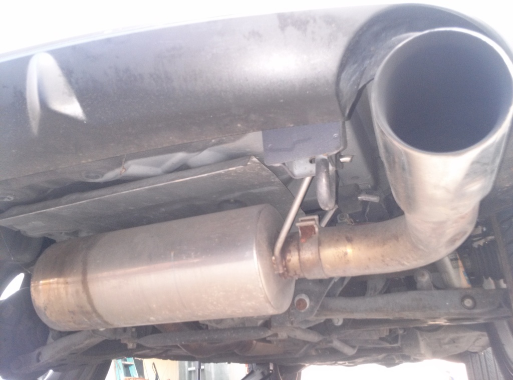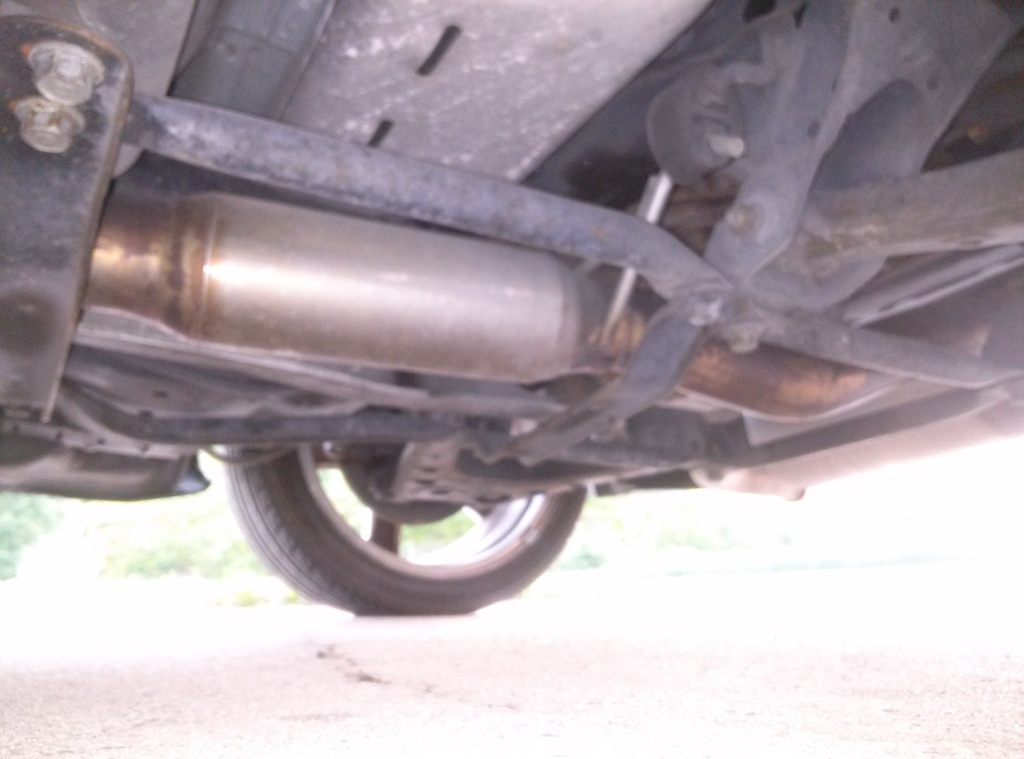 then I was anxious to take a look and see what exhaust was installed on this thing.... I'm still not sure if this is just a flying miata muffler or a full exhaust system... here is some pictures.