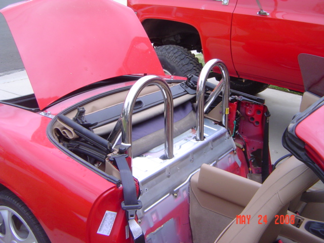 So I am helping my friend sell her miata....and we start talking...and before you know it...I am swapping my Racing Beat style bar for her Hard Dog Stainless Duece!!