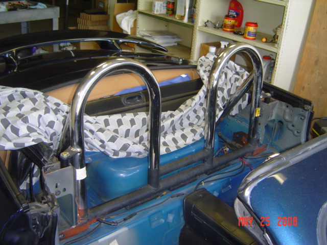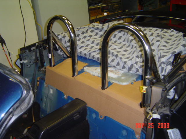 Nice trade. I would swap the package tray from the other car, as it is already trimmed to fit the roll bar. As for mounting the rest, drill the holes, and bolt it in. It looks like it will mount a hell of a lot easer then my boss frog double did.