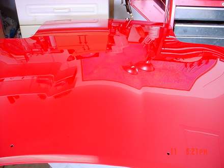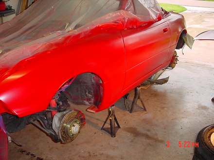 Well, here are a few more pictures for you folks. Almost everything is BASED now. The Fender covers are CLEAR COATED. As soon as it stops raining, I'll get bask to work on it. The hood needs a new base coat & the rear fascia needs to be base coated --- Then it's on to the CLEAR COAT for her......... Pictures BELOW. Click on them to make them bigger.