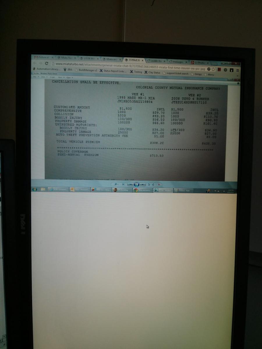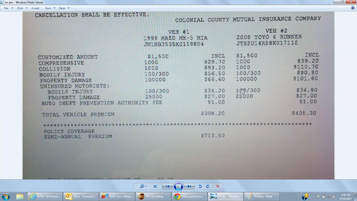 Well just moved out of the parents house, bought a place of my own, and thus its time for auto insurance to go into my name. It is through the same Nationwide office my parents have been using. Just looking for input from what other people are paying. I have a '99 miata as well as an '08 Toyota 4-Runner. I really don't have much of a clue as far as what I'm paying(good deal/bad deal), and was hoping to get some input. 25 year old, MAN, only thing on my driving record is a speeding ticket(50 in a 40) from about 6 months ago.