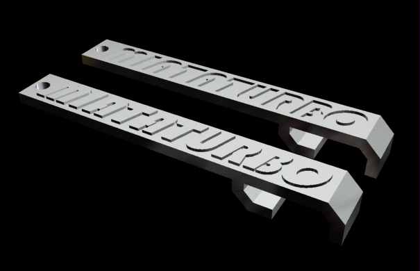 It says TURBO (O is the turbo icon).. that is 1 cm wide, sitting on top of a flat plate which will be the lever part of the opener.. on the other side of the flat plate it can say either: MIATA or MX-5... or, if i shrink the font, both.. Ideas?