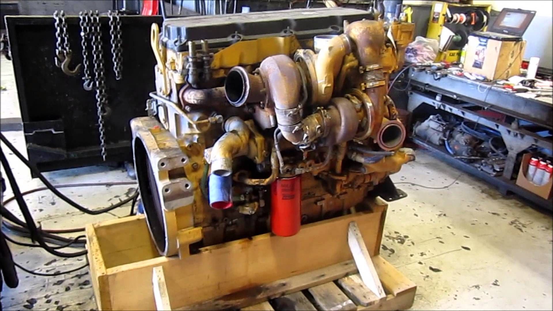 The two turbos are bolted directly together on both the hot and cold sides, with no intermediate intercooling. I've no details on how the wastegates are controlled, or why we're seeing three vacuum actuators instead of two; that seems to conflict with what I've read about constant-compound charging, though perhaps that was specific only to the race engines.