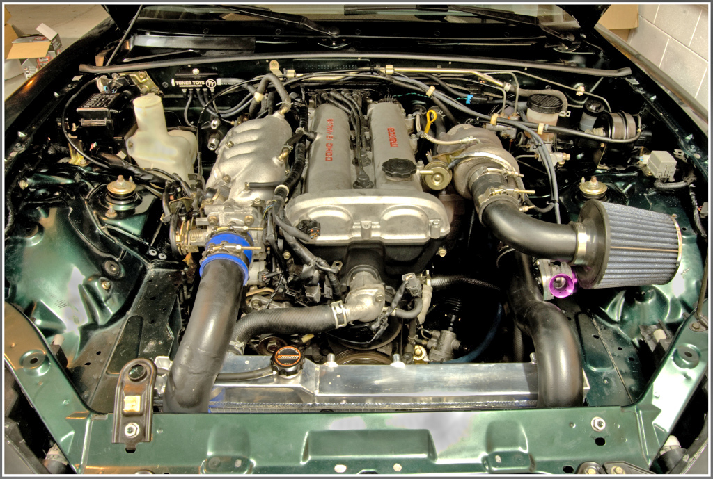 The engine is the same (for the most part), but the major change is the removal of power steering (like it better that way) and A/C (didn't work), plus the tuck of the headlight harnesses and removal/relocation of the coolant overflow tank.