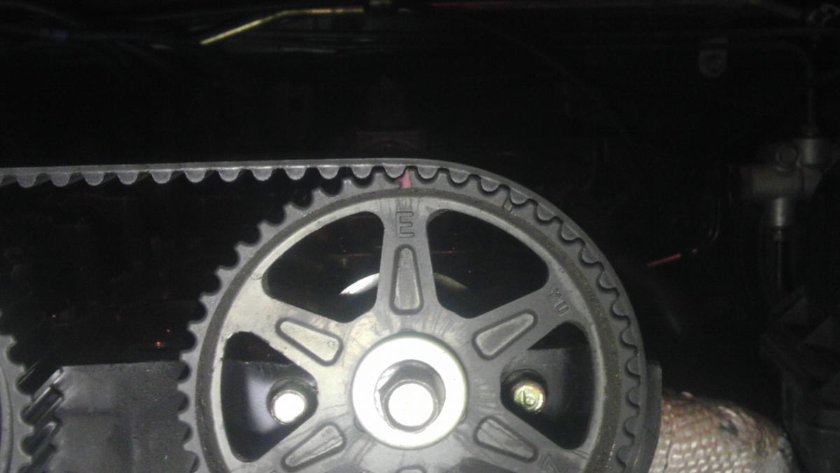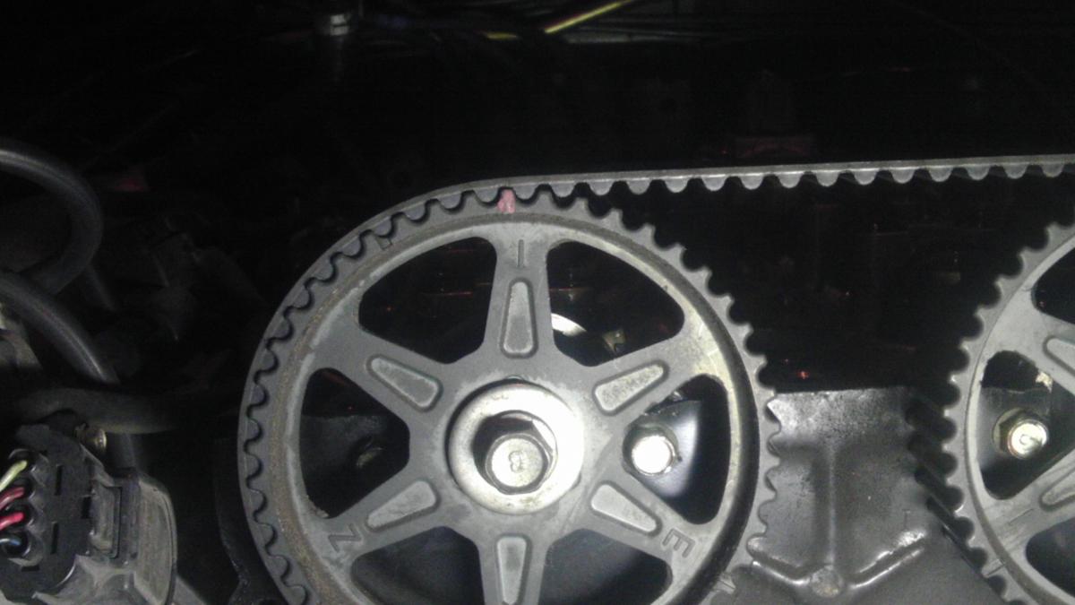 make a mark on the pulley at the 0 degree mark on the timing indicator on the timing belt cover