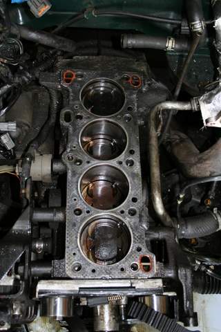 Fun things to do on a Saturday morning...tear down your setup. Woohoo....not! On a side note, the headgasket, cylinder walls, and pistons look great for a car that has seen 100k+ miles and lots of boost. No obvious bent valves, but probably bad seal/burnt valve on the exhaust side. I haven't taken a real close look yet.