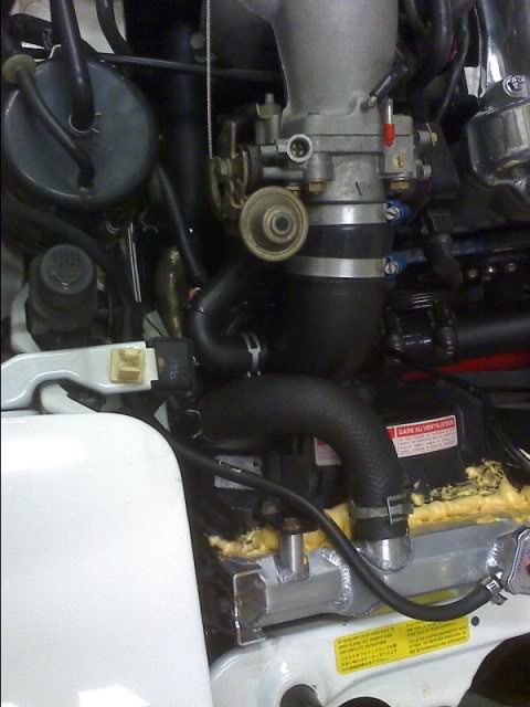 I removed the powersteering box before that, Sorry man. I dont have PS or AC. If you left the PS I think you may even have to retain the mixing mani or have a straight shot to the back of the motor (i think... mind you this is from memory). Just so happens the 1.8 is perfect for me because I have a water cooled turbo and the feed was right there for me, and I used the return line as my heater feed. If you havent dropped your power steering, let me be the first to recomend it.