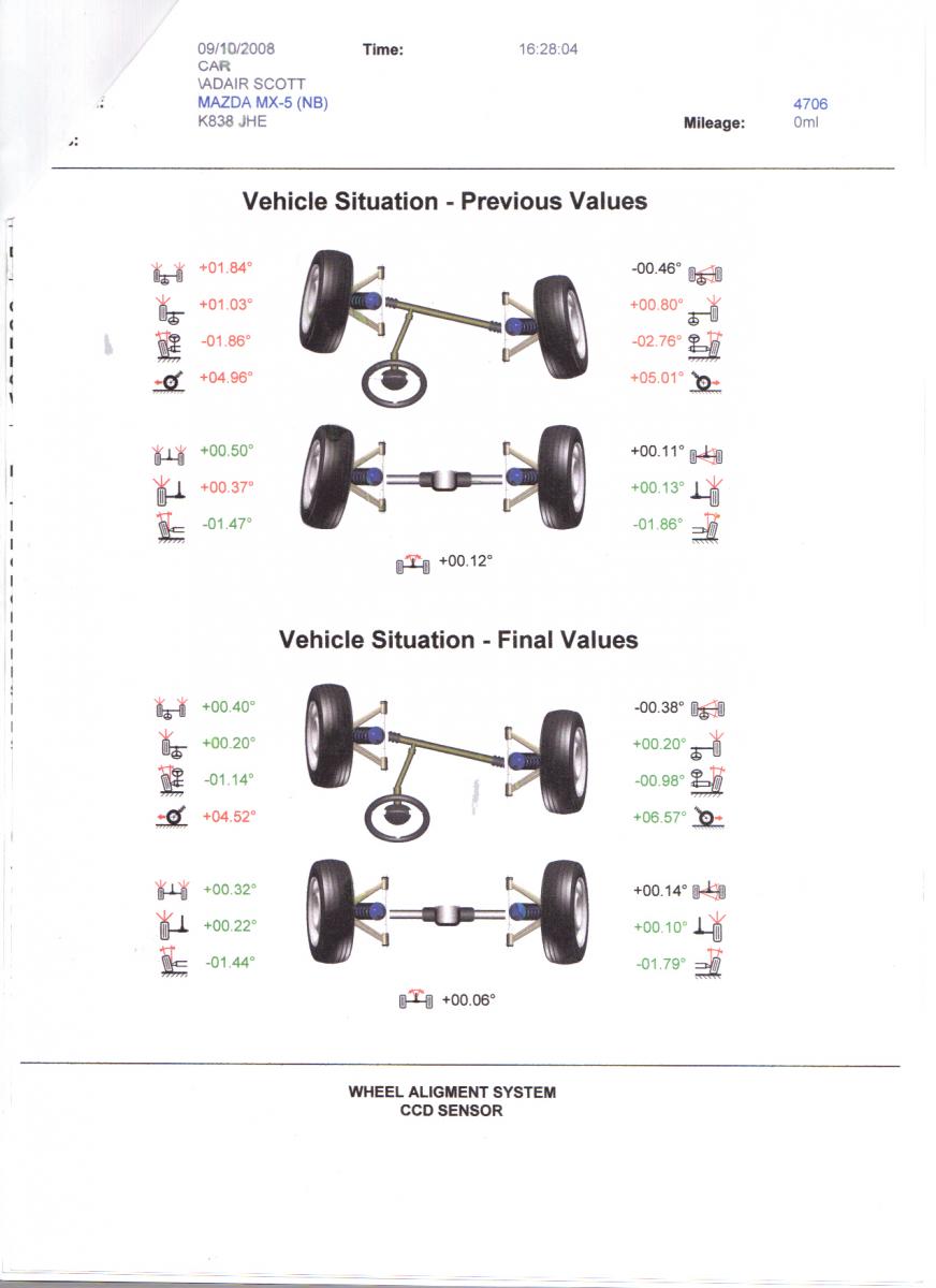 I got this done today but the car is still pulling. Tyres look good with no uneven wear. Check out the red bit on the final values. Could this be my problem? I didn't get to read this untill I had left the tyre depot