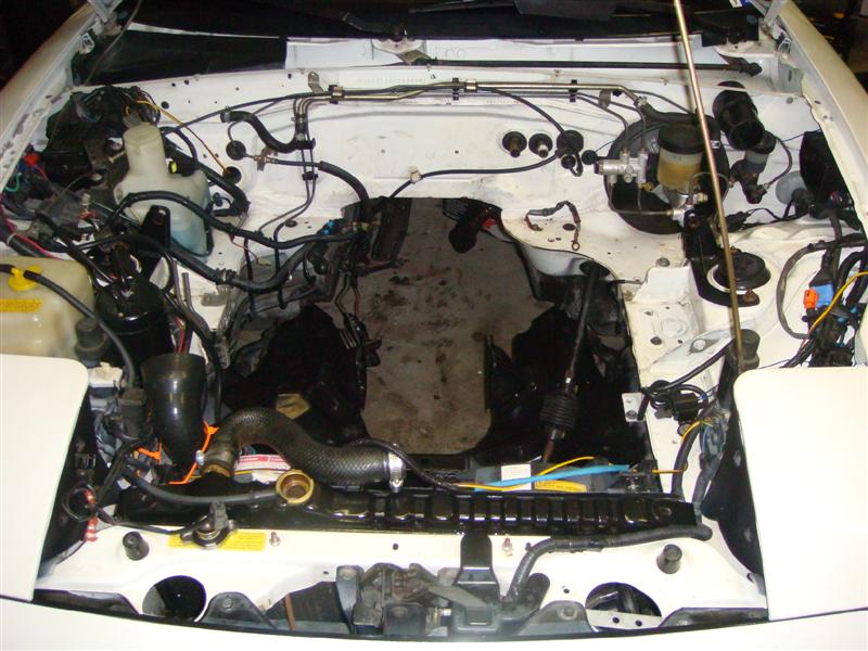 Picked up my "new" 200k mile motor this morning. It took about 2hrs to complete removing the current motor. I didn't **** around with the tranny this time... I just left the top 2 bolts in and then got under the car and held it up while a buddy got the last bolts, and then lowered onto my chest and then to the ground. The motor came out with no issues, I simply unbolted the motor mount brackets from the engine.