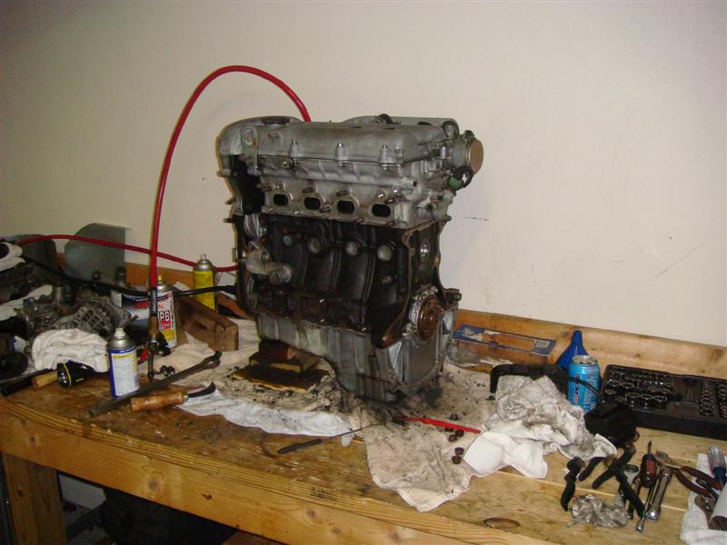 I pulled my motor a few weeks ago to find a source of noise and generally check things out. With 50k+ on the turbo, clutch, etc, and wanting to clean up a few things on my pipe routing, I went at it.