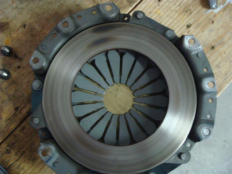 The clutch pics have me worried. You can see on the flywheel side it appears that all the contact is on the inner part of the disc, while on the PP side, all the wear is on the outer edge. The kevlar in those areas is dark and looks like what I would normally describe as "glazed". You can also see on the PP there's a place where the metal looks burned?