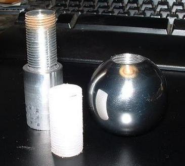 That's not chrome, that is just plain, old steel, polished up. Left is the mandrel (aluminum) I used to hold it in the lathe, center is the polypropolyene adapter. Finished **** weighs in at 15.3 oz. and the adapter is .3 oz.