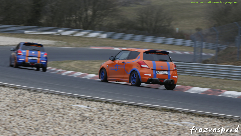 For those of you that have not driven the ring, I highly recommend doing at least half day in something slow like the Swifts to learn it faster. Some of those blind bends done flat in 5th were ah, character building. My favorite was the fast downhill left - right chicane just after exiting Kallenhard. Spooky best describes it.