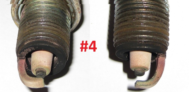 I don't like the looks of #4. Are those specks on the tip insulator? If so, that plug is overheating. Could lead to pre-ignition.