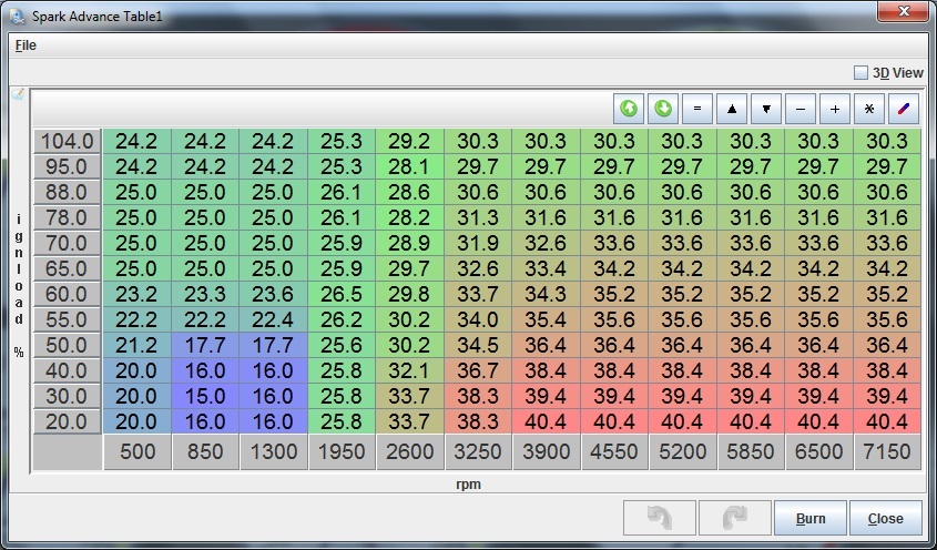 EDIT: By the way, my fuel table is thoroughly tuned with VEAL based on the above AFR table. The ignition map has not been dyno tuned but I kept an eye on knock detection back when I started running it.
