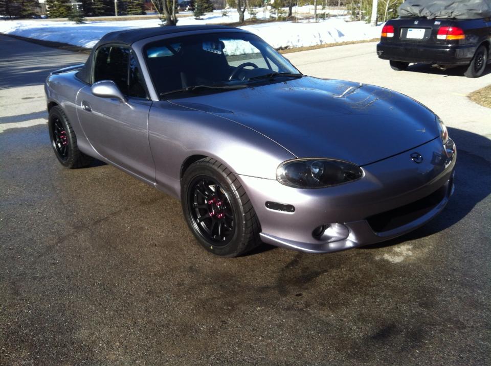 Only in Michigan will you see a girl washing and waxing her miata when there is snow still on the ground!