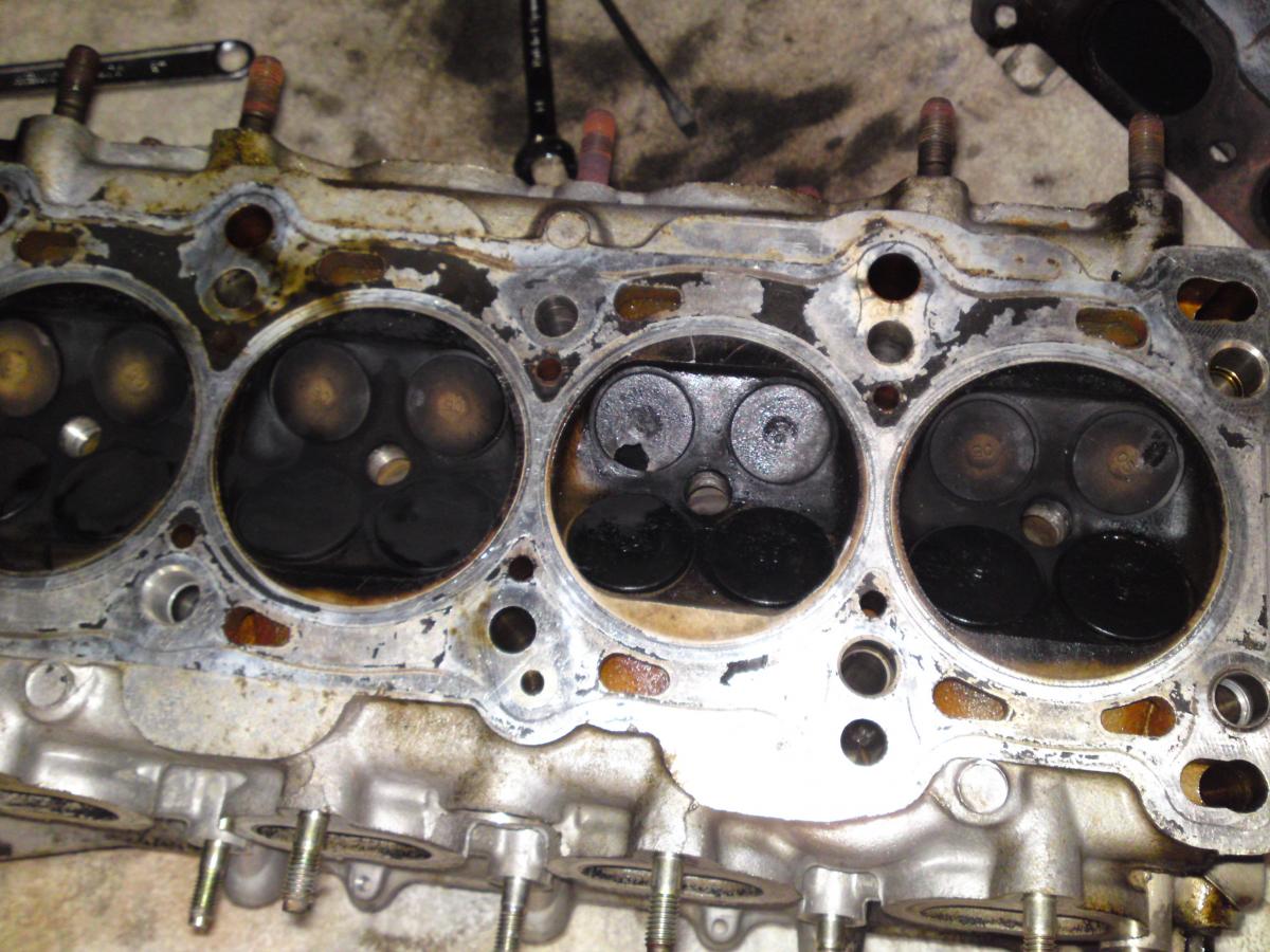 I believe its a direct result of running way too rich for an extended period of time. My machinist said a piece of carbon can get caught in the valve seat at the same time the car gets under load and it will burn through like an acetylene torch.